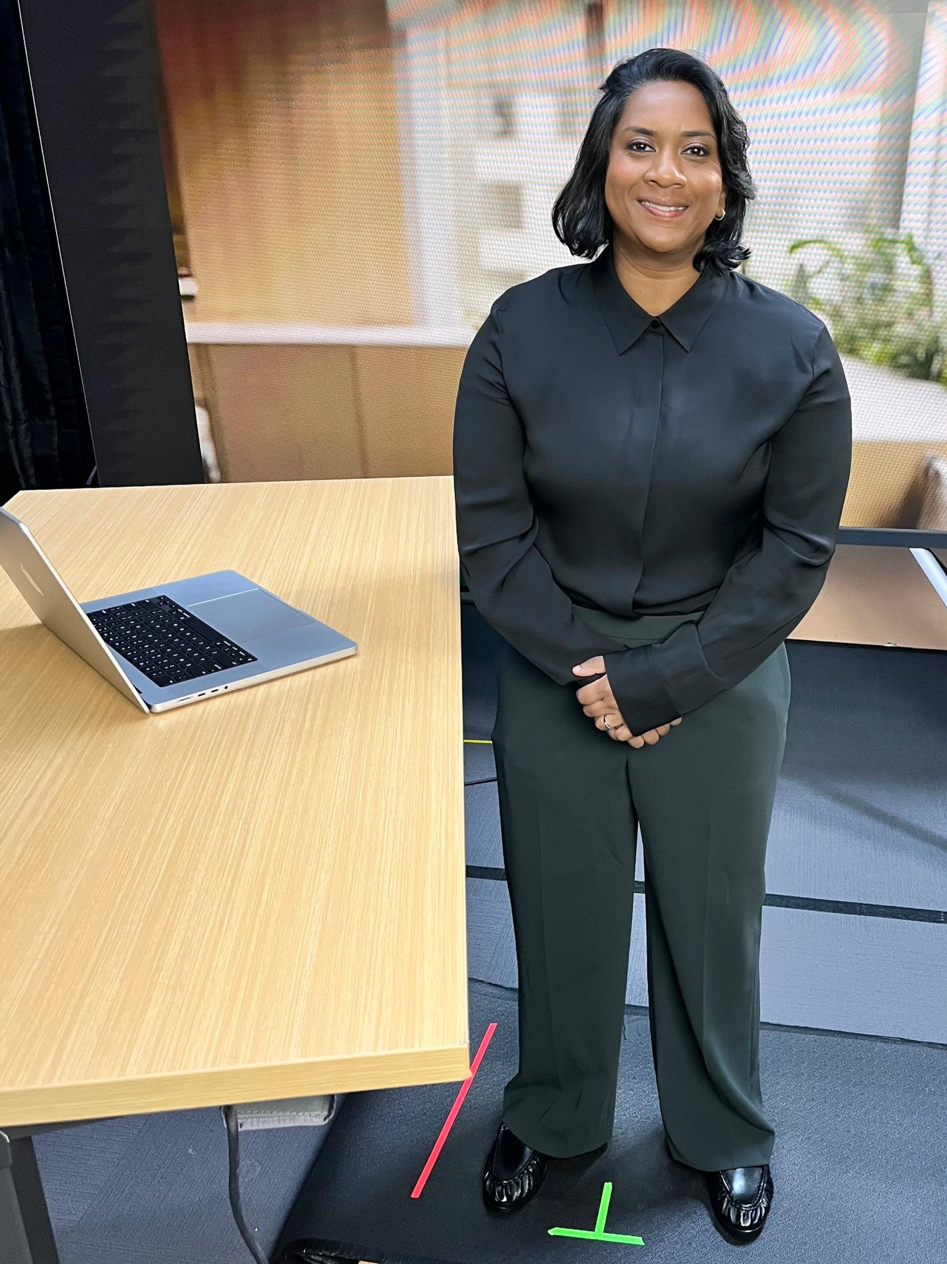 For My client’s LinkedIn Learning shoot, I recommended breathable, free-flowing clothes for easy movement because she had to stand for 5-7 hours a day in the same position and had to wear the same clothes multiple days. To be able to fly cross-country with the clothes, I carefully curated outfits that won’t wrinkle easily. Lastly, I paired the outfit with designer loafers to elevate the look while prioritizing comfort.